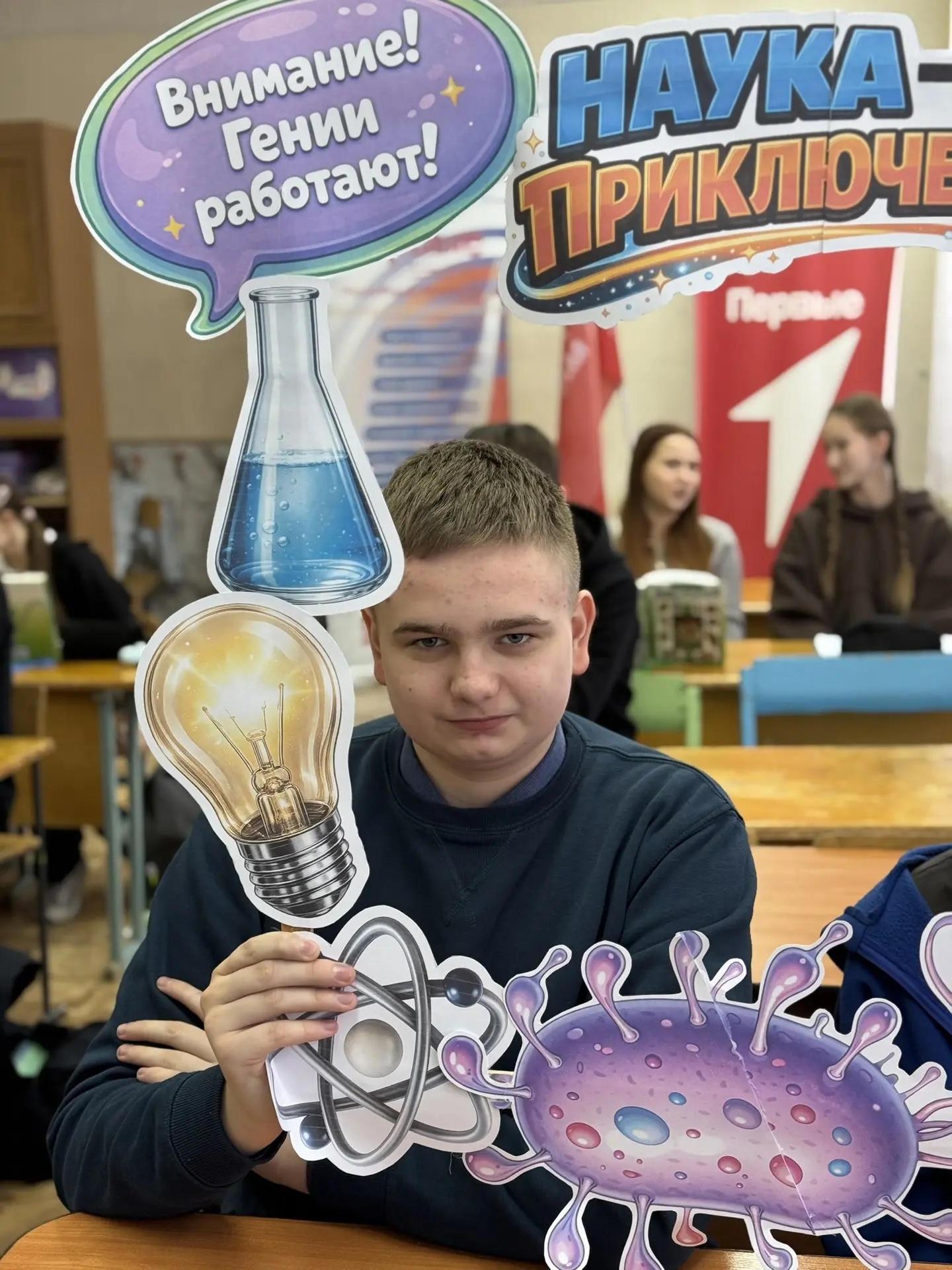 Что у нас получилось: ️ - Стильное оформление в научной тематике ️ - Возможность сделать запоминающиеся фото ️ - Отличное настроение для всех участников. |